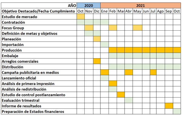Estándares de ingresos: Tras el lanzamiento de los productos en los puntos de distribución y la campaña de publicidad, debemos realizar un análisis de los ingresos semanales y mensuales, mismos que nos llevarán a tomar decisiones trimestrales.